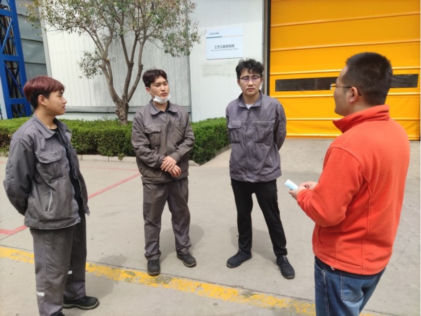 21级机电专业、机械专业学生进入企业后先进行公司级别培训,考试合格后才可上岗。按照岗位的不同学生分配到不同车间,有的在传动、有的在驾驶室、有的在总装、P平台等。第二天进行车间级别培训,由车间的老师傅手把手带领学生操作。这对于很多学生来说是人生第一次进入企业,也是第一次由课堂转入企业。部分学生心理可能会出现不适应,此时辅导员与带队老师成了他们最好的倾诉对象。学院领导也时常到企业看望学生并与其亲切交流,解决学生诉求。