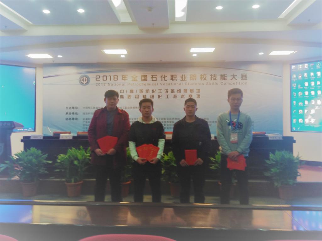 学院接到大赛通知后,积极组织师生备赛,从7月份便开始对学生进行集训。没有经验,只有苦练。暑假期间,常永清、李科、谭利萍三位指导老师没有享受暑假时光,而是积极组织学生备赛训练。开学后老师们又牺牲一切业余时间,加强对学生的指导训练,带领参赛学生在校内加强理论学习,又因缺乏设备,先后奔波于南京科技职业学院、齐鲁石化培训中心等地借调设备进行技能培训,指导学生实战操作训练。