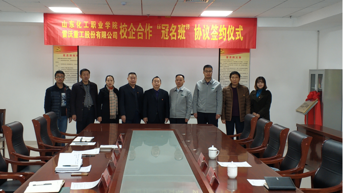 2019年12月19日上午9时,山东化工职业学院机电工程系、自动控制系与雷沃重工校企合作“冠名班”协议签约仪式在学院2号楼会议室举行。会议由自动控制系主任范兴凯主持,雷沃阿波斯集团副总经理高丕泉、雷沃重工股份有限公司人力资源部部长褚勇刚、学院党委委员兼教务处处长冯喜成、招生就业处处长潘若方、机电工程系主任彭爱玲等领导参加会议。