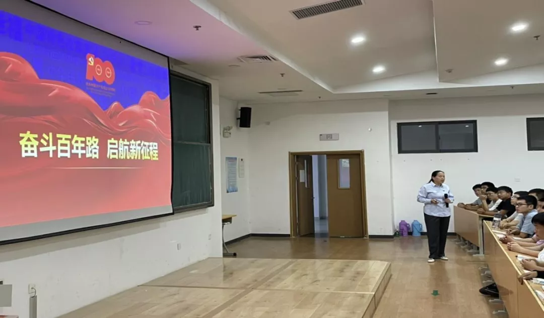 课堂上,彭书记首先围绕“奋斗百年路,启航新征程”的主题,展示了党的丰功伟绩,介绍了党支部对于党的建设的重要性;鼓励同学们传承红色基因,传播红色文化,厚植家国情怀;引导同学们在跟党走、共奋进的道路上与时代接轨、与祖国共振,将个人梦想与中国梦相融贯通。