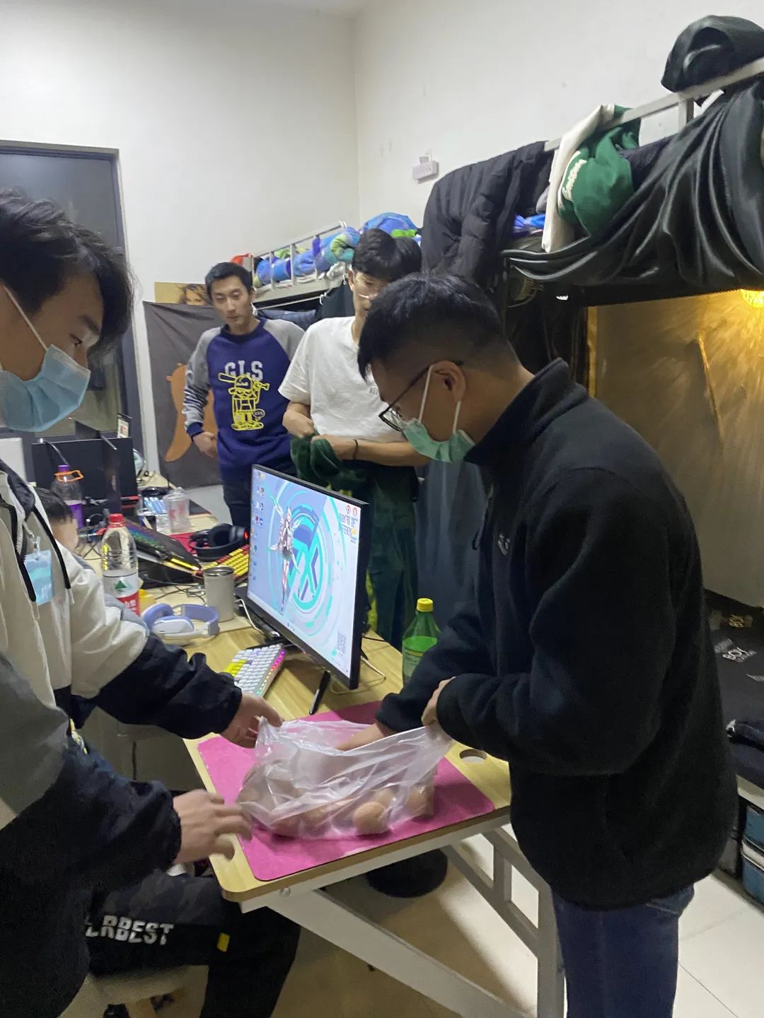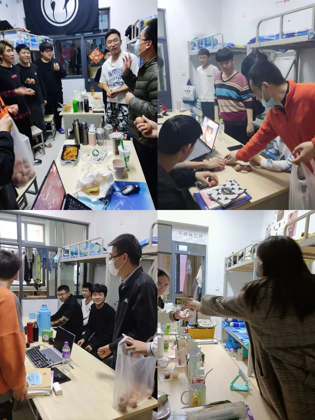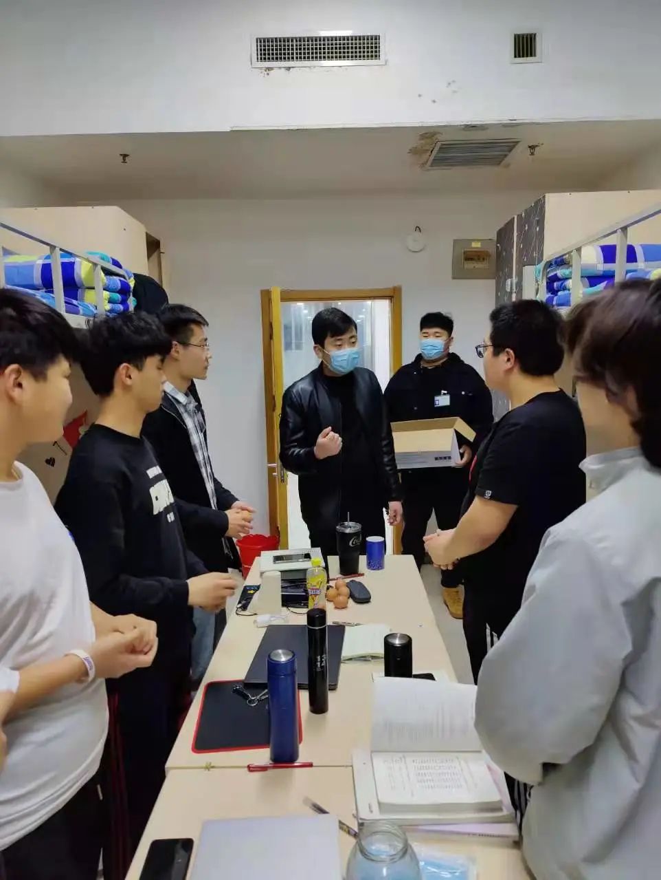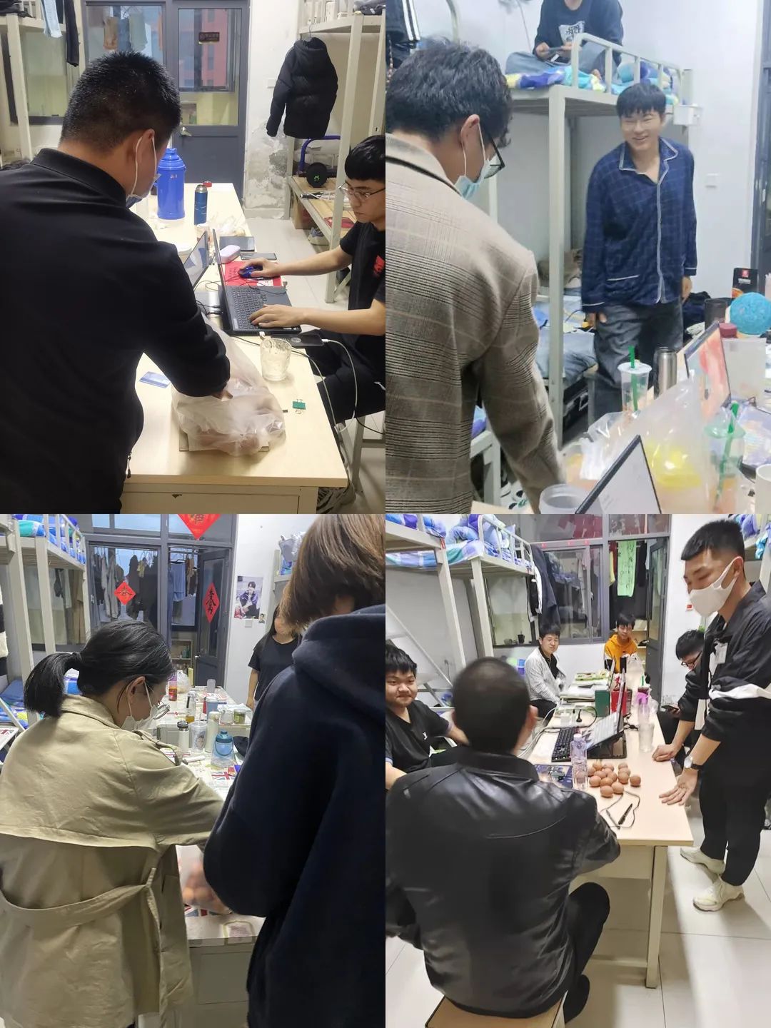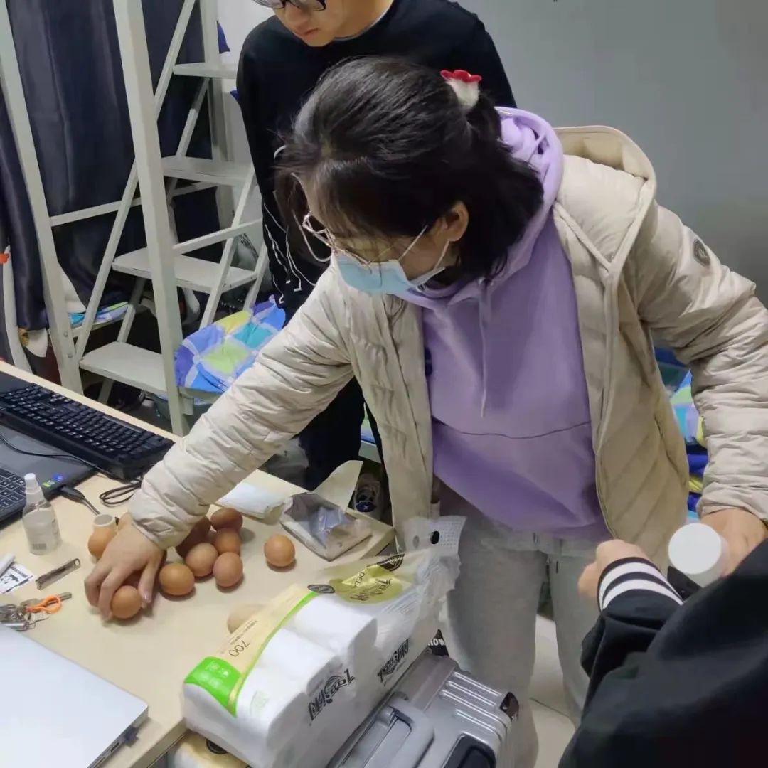 老师们借送鸡蛋的契机,也为同学们讲解疫情防控形势,传达了学院下发的疫情防控相关文件要求,查看学生们宿舍的消毒记录表等日常疫情防控工作落实情况,并且提问了学生关于疫情防控的应知应会知识。与此同时,老师们代表学院感谢同学们对学院疫情防控工作的积极配合,希望同学们以良好的生活作风推动自身学业的进步。