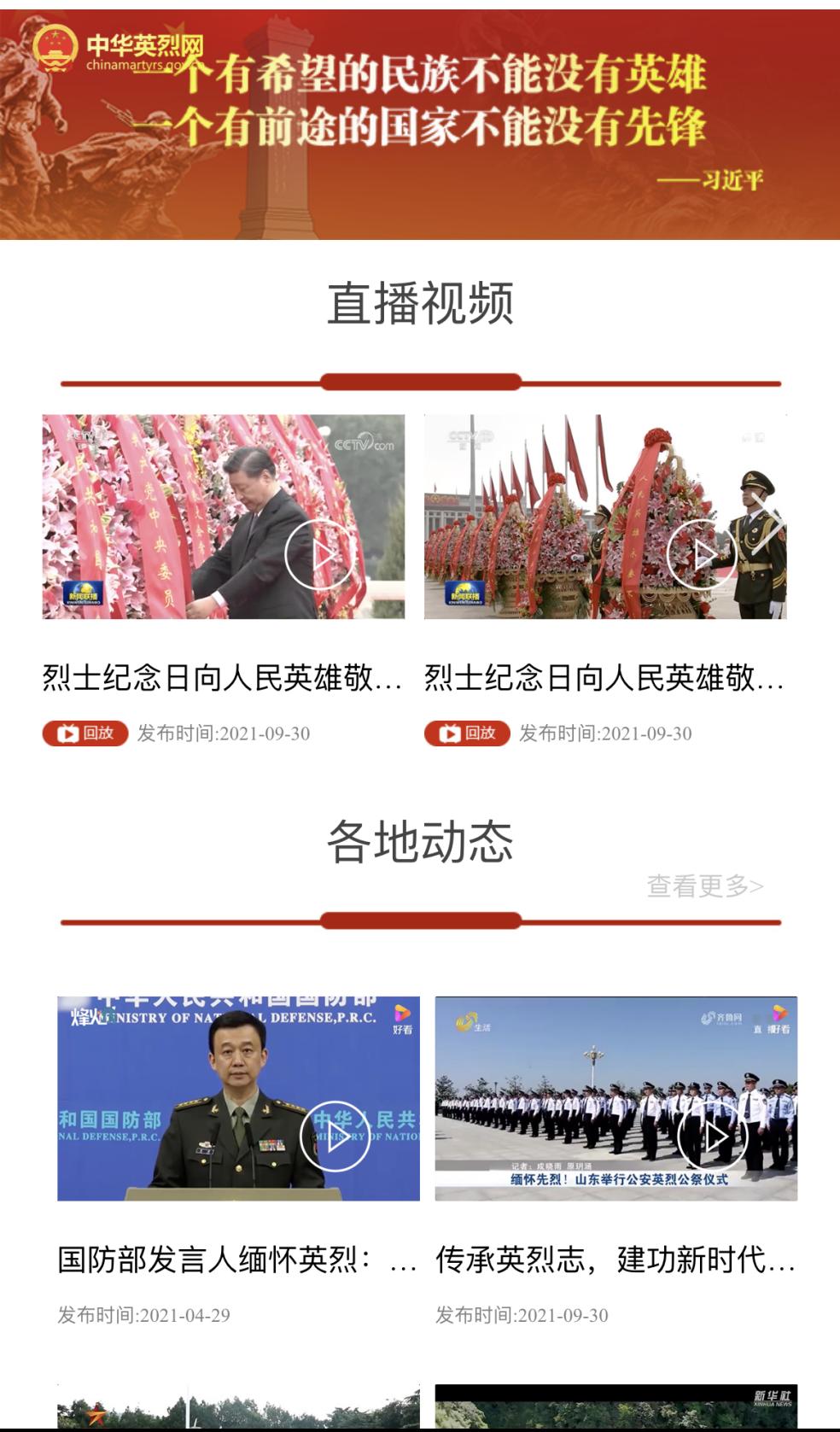 2. 互动方式:网上祭英烈版块里有三个子版块,分别是“祭奠英烈”、“敬献花篮”和“视频展播”。