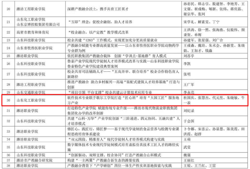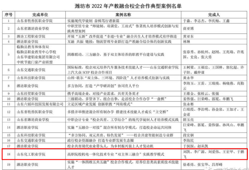 近日,潍坊市产教融合研究院发布2022年产教融合校企合作典型案例名单,我校《高职院校机电一体化技术专业“双主体三融合”实践教学模式》《软件技术专业联手歌尔工学院打造“匠心班”培育“大国工匠”服务地方产业》2项案例成功入选。