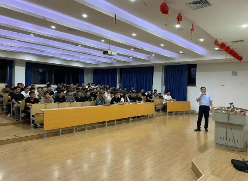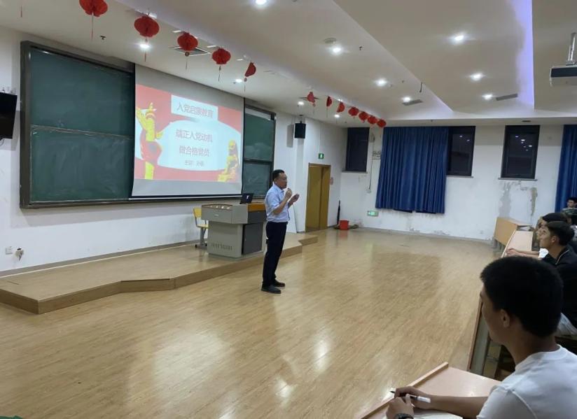 机电工程学院学生党支部书记孙明以《端正入党动机,做合格党员》为主题,为新生讲授“入党启蒙第一课”。他从“入党标准及条件”切入,通过详细讲述对入党条件的认识误区、共产党员的条件、以实际行动争取做一名合格的共产党员及中国共产党的行动指南、共产党人的初心和使命、党员必须履行的义务等方面。使新生对实现中华民族伟大复兴,团结带领中国人民取得新民主主义革命的伟大成就、社会主义革命和建设的伟大成就、改革开放和社会主义现代化建设的伟大成就、新时代中国特色社会主义的伟大成就有了更深的理解与感悟,激励大学新生从党的百年伟大奋斗历程中感悟和汲取前进的智慧和力量,勇担时代赋予的历史责任。
