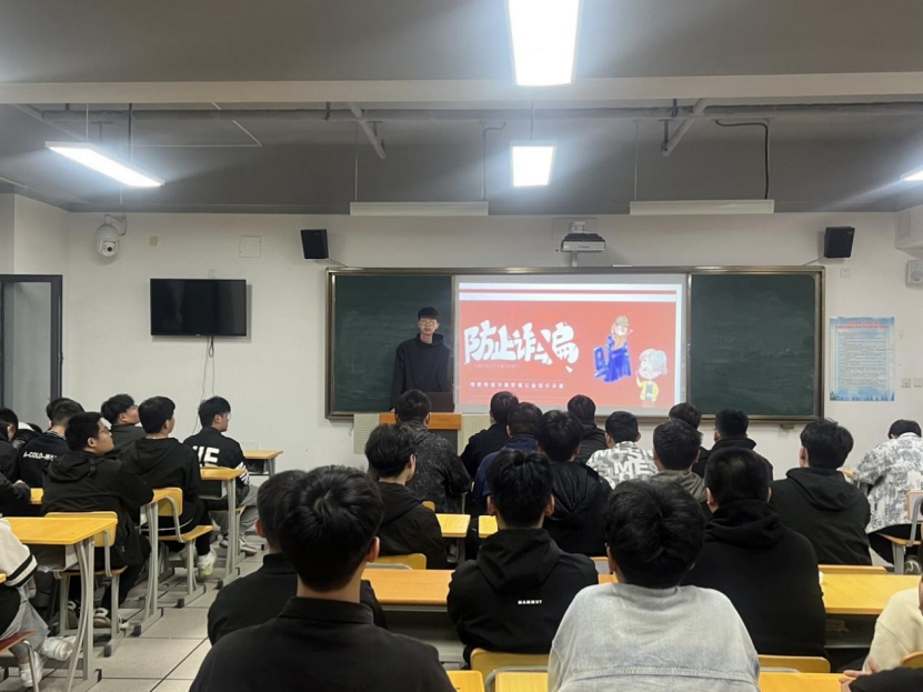 班会上,各个班级通过视频播放、演讲等方式介绍了短信诈骗、刷单兼职诈骗、充值返利诈骗、贷款类诈骗、假冒公检法类诈骗、平台买卖游戏账号诈骗等多种诈骗形式。本次会议主要围绕常见的诈骗类型、应掌握的诈骗技巧和面临的法律风险三个方面进行详细介绍。