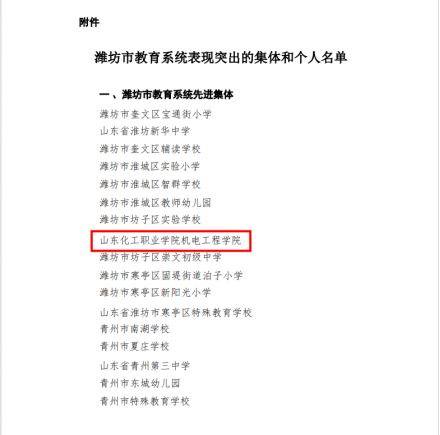 【喜报】我校机电工程学院荣获潍坊市委教育工委“2024年潍坊市教育系统先进集体”荣誉称号