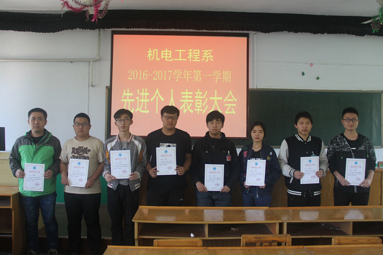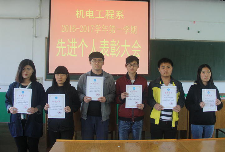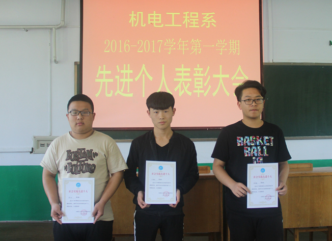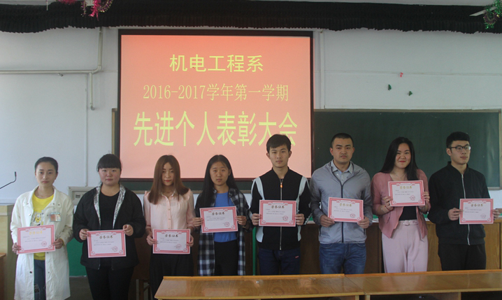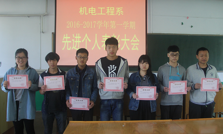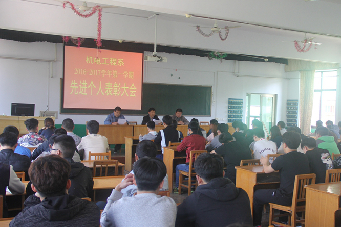 4月27日,机电工程系举行全体学生大会,对2016-2017学年第一学期在学习、工作各方面表现突出的学生进行了表彰。