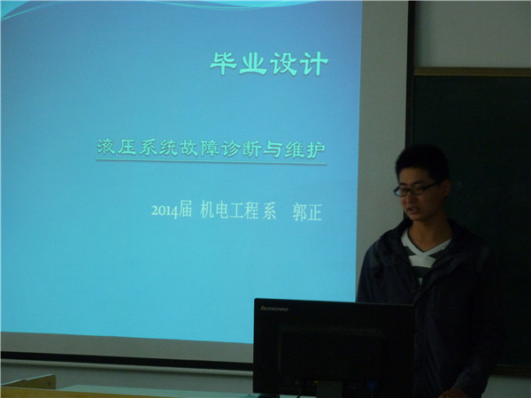 本次毕业论文答辩是在指导教师精心指导之下,全面完成毕业设计任务的基础进行的。机电工程系成立了由范兴凯、范振河、亓学建、李钦唐、王纳新、窦承继、刘姗老师组成的答辩委员会。答辩委员会制定了学生答辩要求、评分标准,答辩教师对答辩的毕业设计(论文)进行了提前阅读审查。