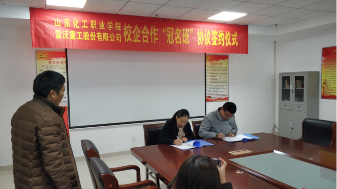 2019年12月19日上午9时,山东化工职业学院机电工程系、自动控制系与雷沃重工校企合作“冠名班”协议签约仪式在学院2号楼会议室举行。会议由自动控制系主任范兴凯主持,雷沃阿波斯集团副总经理高丕泉、雷沃重工股份有限公司人力资源部部长褚勇刚、学院党委委员兼教务处处长冯喜成、招生就业处处长潘若方、机电工程系主任彭爱玲等领导参加会议。