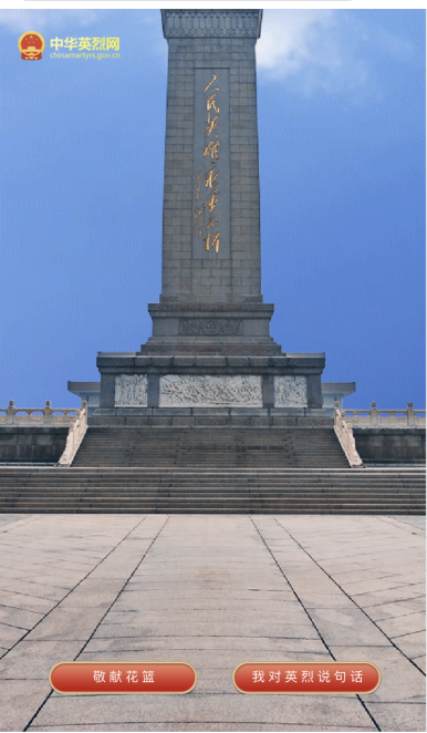 (2)“敬献花篮”:可点击“敬献花篮“向人民英雄纪念碑敬献献花篮或点击“我对英烈说句话”留言。