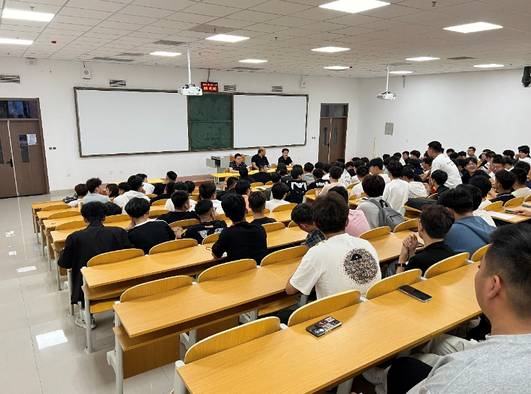 新生代表们积极发言,纷纷表达了对大学生活的期待,同时也提出了在课程学习、校园服务等方面的疑问与建议。机电工程学院领导针对新生提出的“如何平衡专业课学习与社团活动”“专业未来就业方向有哪些”等问题,逐一耐心解答,同时分享了实用的学习方法与校园生活小贴士,帮助新生缓解入学后的困惑与焦虑。现场氛围轻松热烈,师生互动频繁,充分展现了2025级新生积极向上的精神风貌。