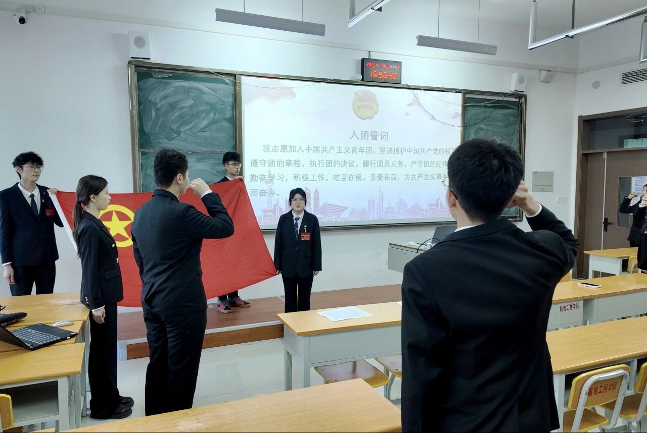 “我志愿加入中国共产主义青年团,坚决拥护中国共产党的领导……”在领誓人的带领下,全体新团员面向鲜艳的团旗,高举右拳,庄严宣誓。铿锵有力的誓词回荡在会场,字字千钧,既是对团组织的郑重承诺,也是对青春理想的坚定告白。团旗的光芒映照在每一张年轻的脸庞上,信念与责任在这一刻深深扎根。