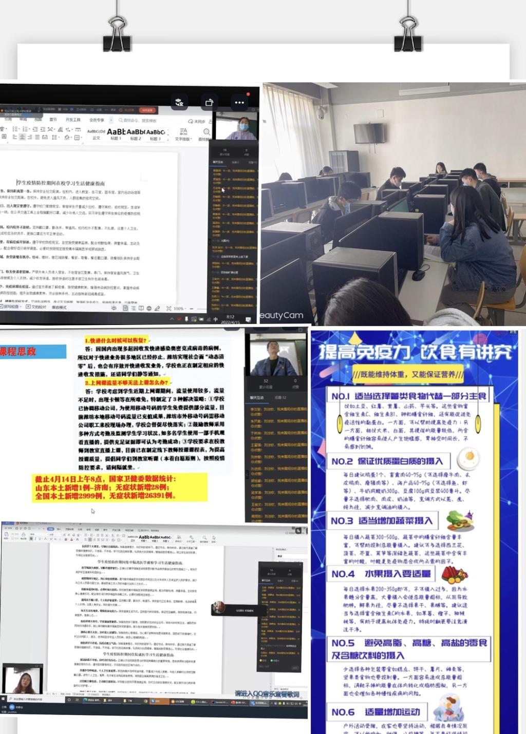 机电工程学院教师结合新冠肺炎疫情防控,在课堂中对学生进行生物安全的相关教育。引导学生如何在疫情期间做好自我防护以及疫情期间学习生活健康指南。