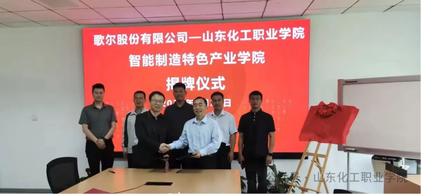 5月23日上午,我校与歌尔股份有限公司共建“山化院-歌尔智能制造特色产业学院”签约暨揭牌仪式在歌尔总部举行。歌尔股份有限公司人力资源部总经理魏文滨,歌尔工学院校企合作高级部长刘永,歌尔工学院校企合作经理杨永鹏,我校常务副校长冯喜成,校企合作处、教务科研处、机电工程学院负责同志参加仪式。